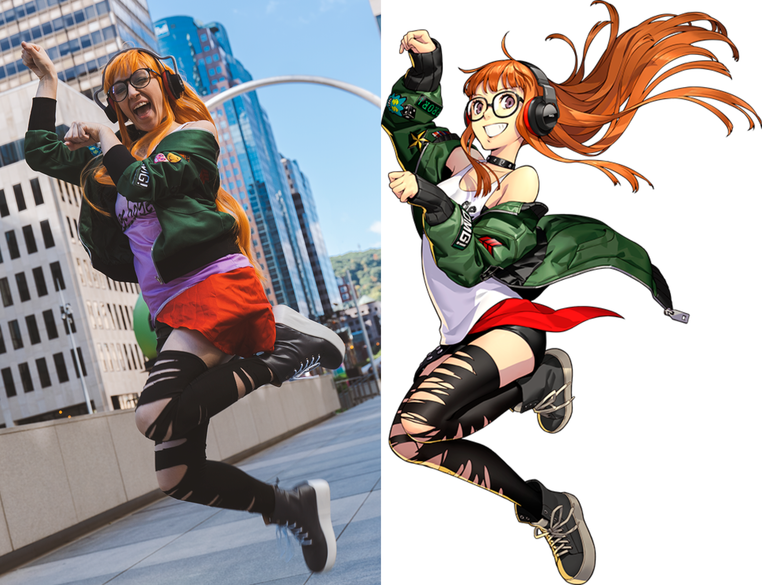 Costume Creation: I bought the wig and (original) shujin pants from AliExpress. The base of the shoes were bought from SHEIN. The belts were bought off Amazon. I bought the bracelets from a thrift shop. The new Shujin pants I bought the fabric pattern in Lycra off of a seller on Spoonflower and then sewed them myself. I made the scarf and painted it along with the shoes as well.